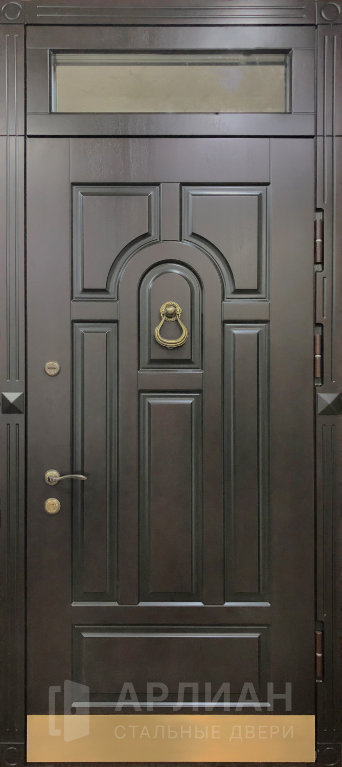 Металлическая входная дверь в коттедж с верхней фрамугой №10