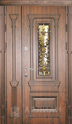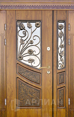 Входная дверь для загородного дома с коваными элементами №115