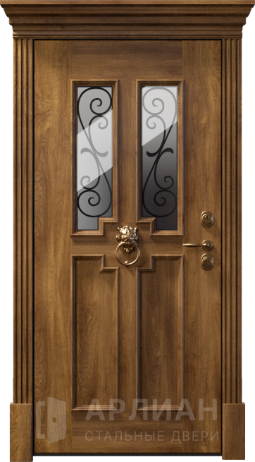 Железная входная дверь в частный дом со стеклом отделка №21