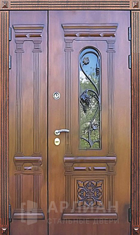 Фото «Арочная двустворчатая стальная дверь для загородного дома №125»