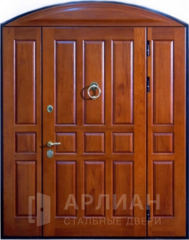 Входная дверь арочная в квартиру с коричневой панелью №62
