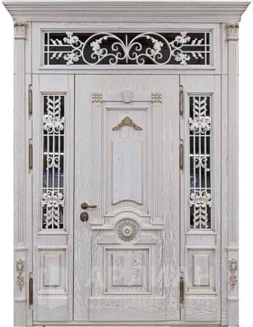 Металлическая входная дверь в коттедж с верхней фрамугой №10