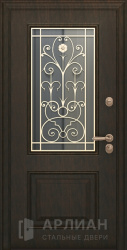 Кованая арочная входная дверь со стеклом и ковкой №69